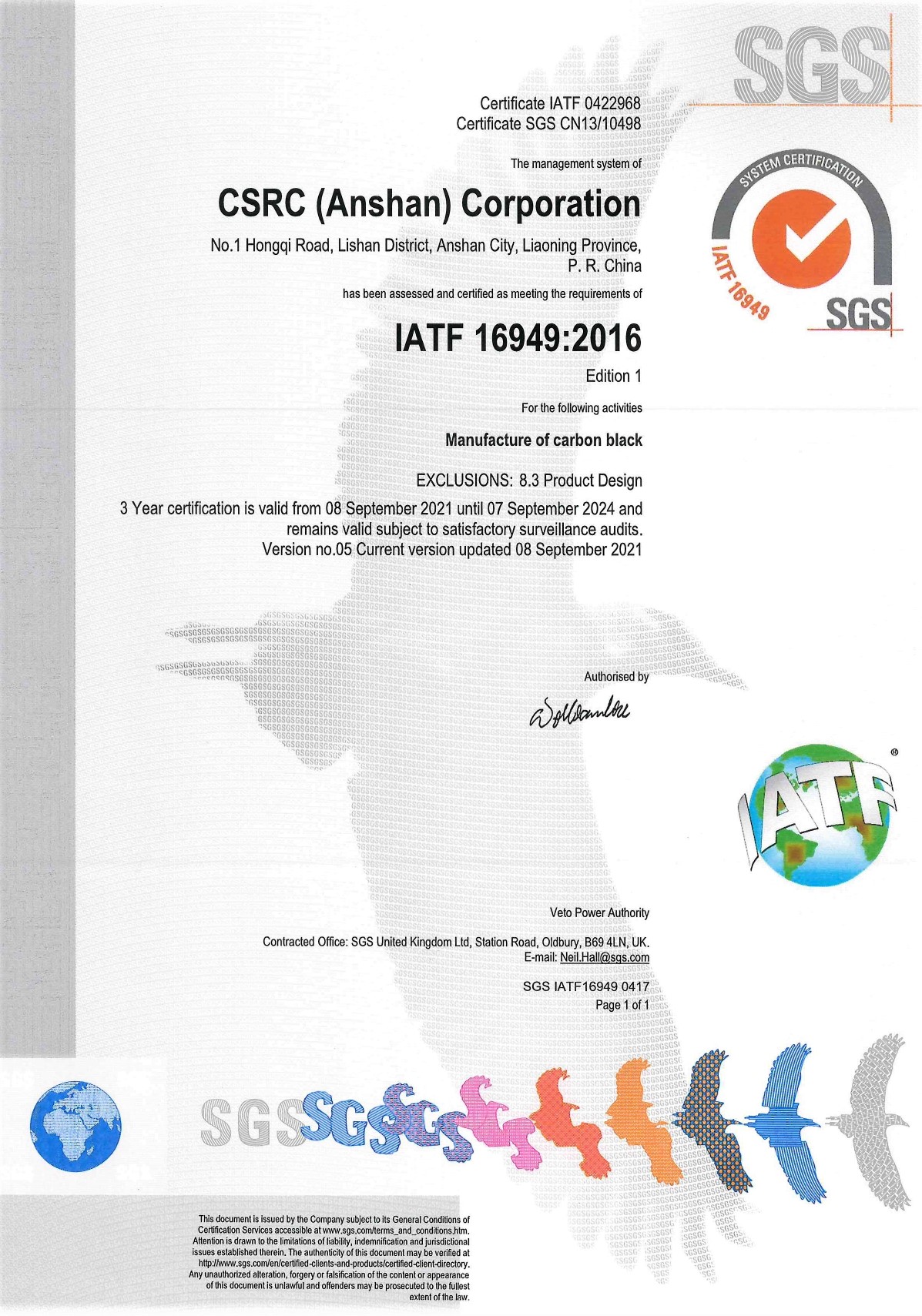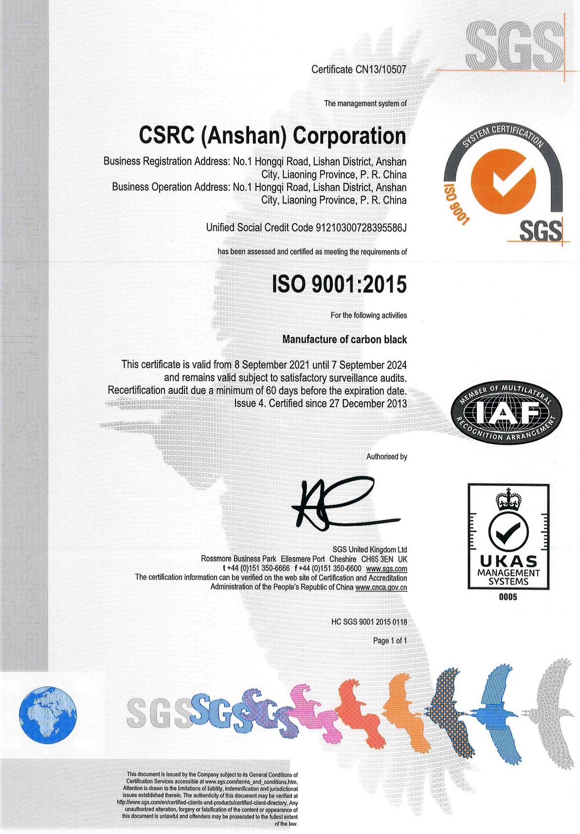 - CSRC China (Anshan) CorporationISO-9001IATF-16949