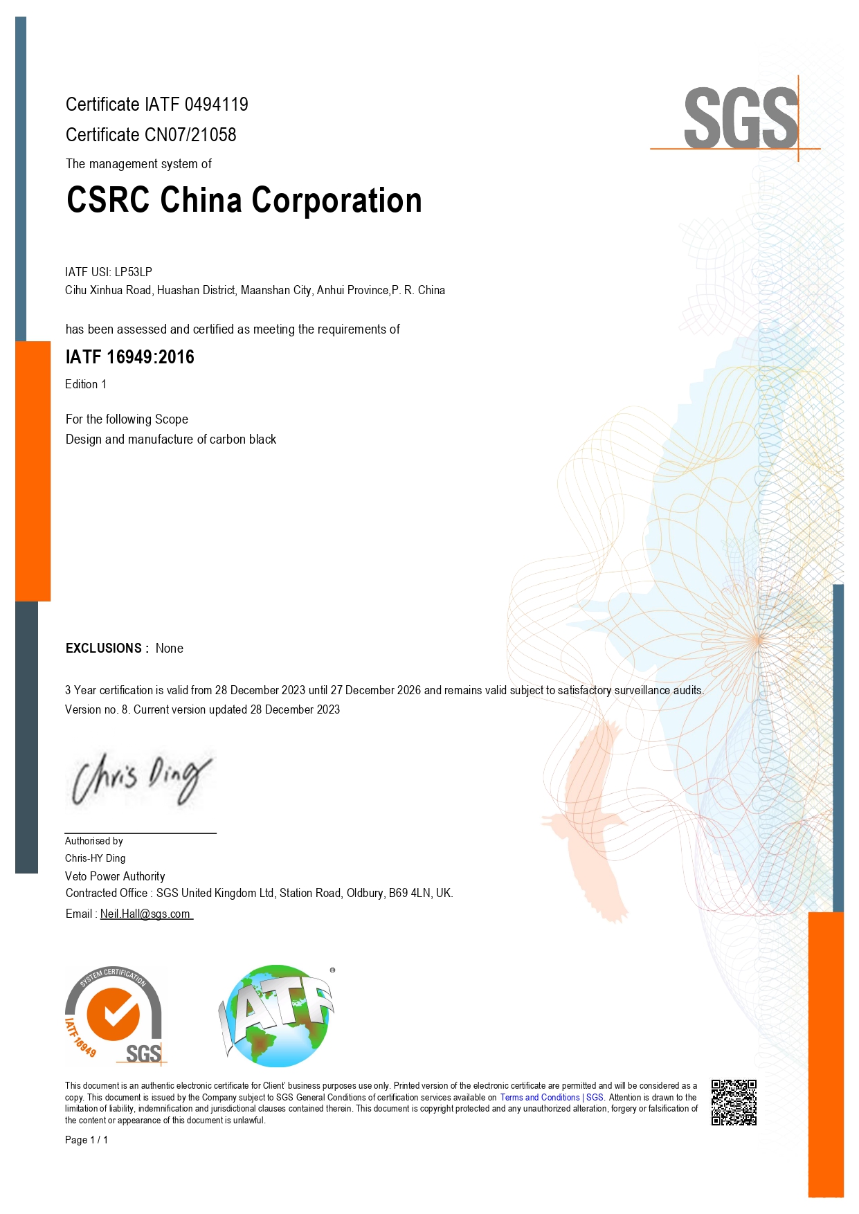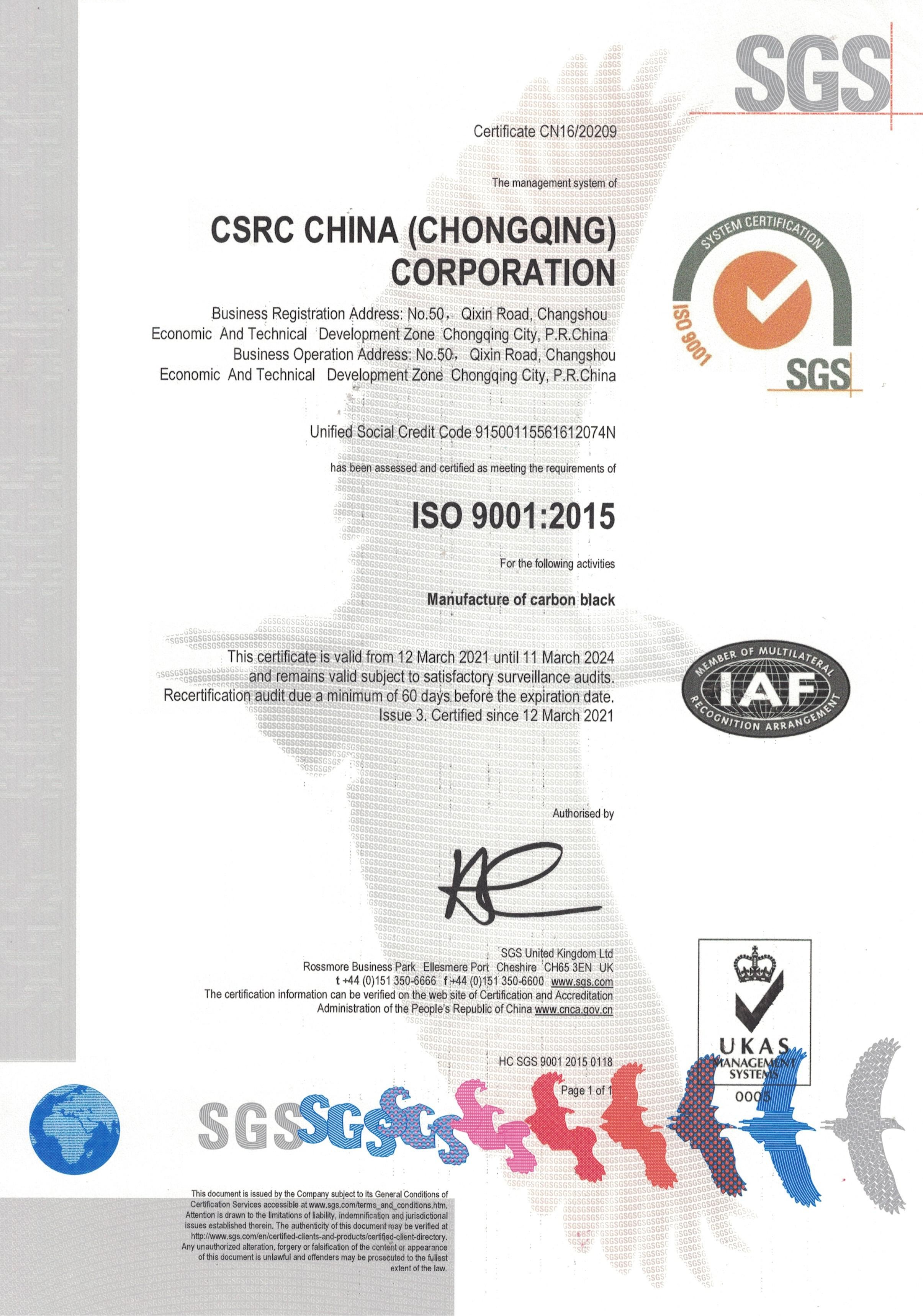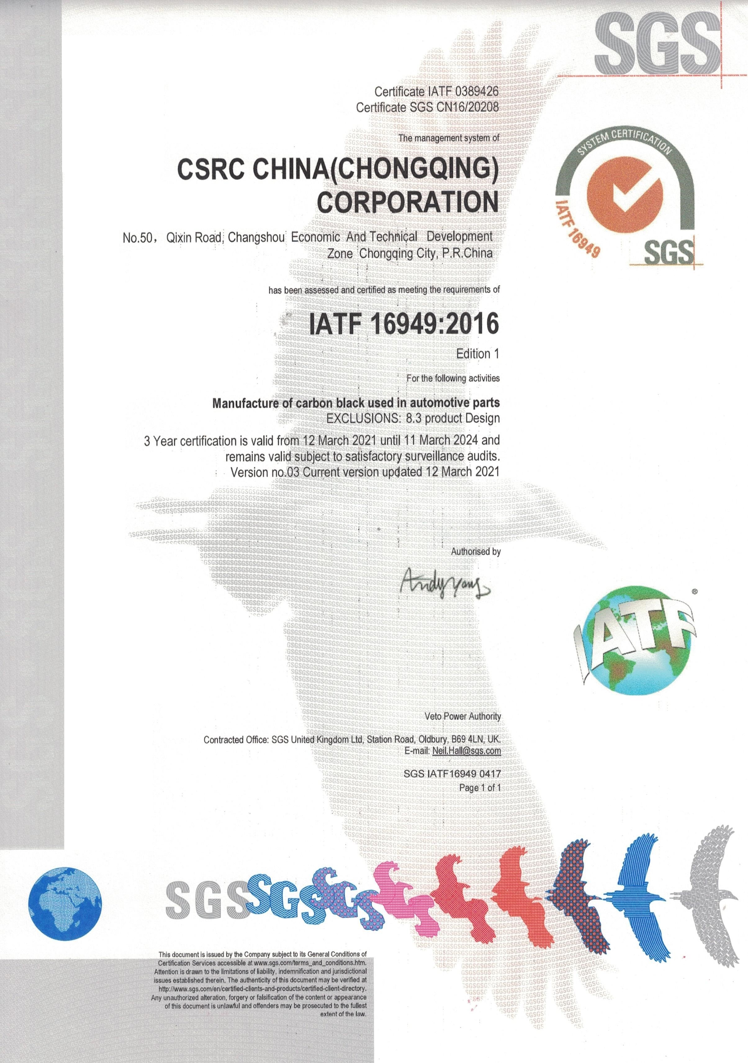 - CSRC China (Chongqing) CorporationISO-9001IATF-16949