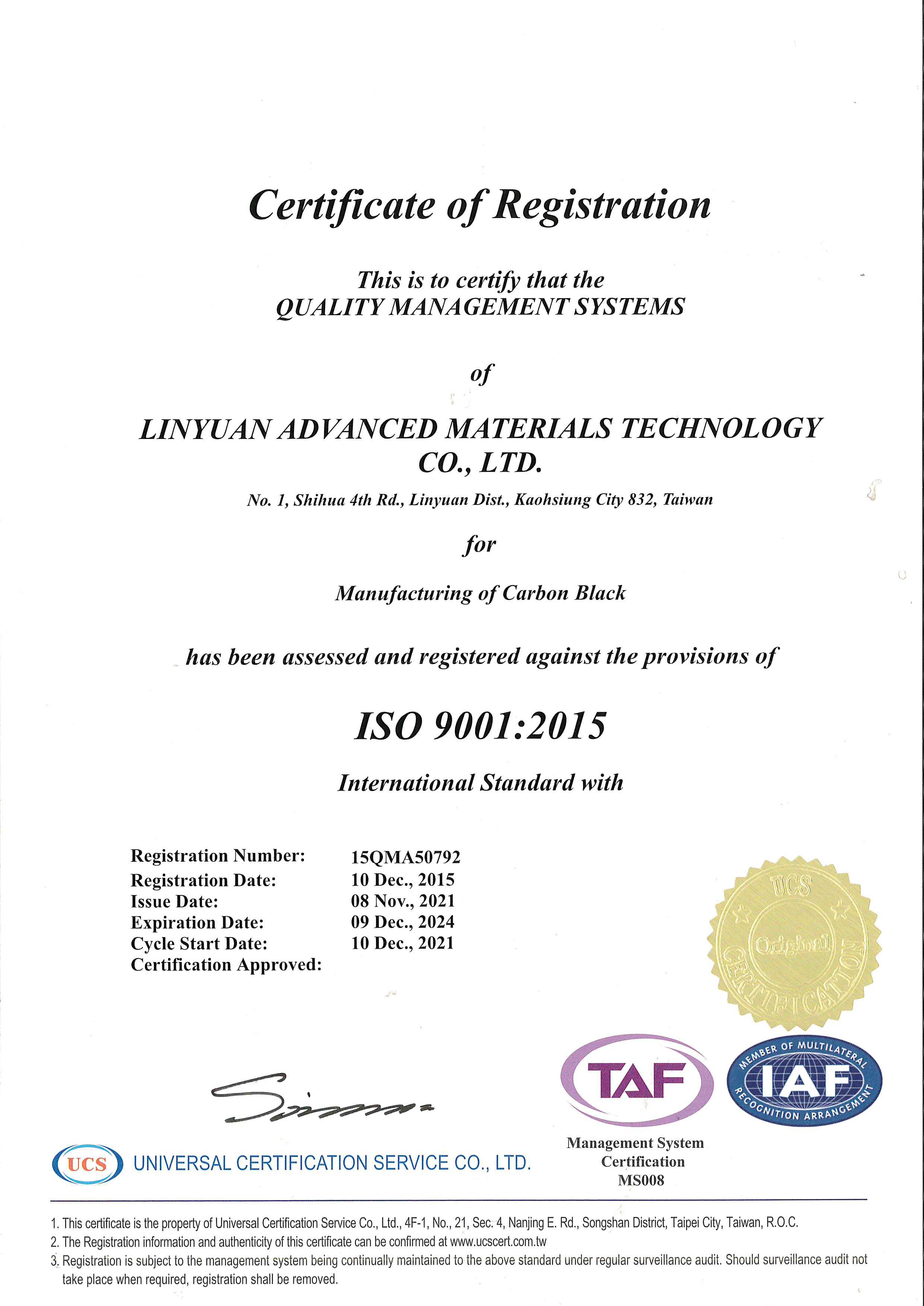 - Linyuan Advanced Materials TechnologyISO-9001IATF-16949